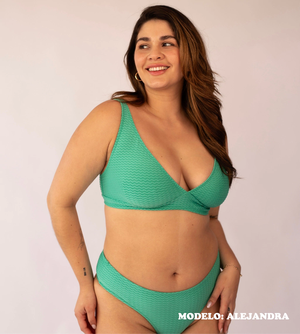 Tiene escote en V con pinza central que realza el busto, breteles anchos súper cómodos y elástico en el bajo busto para un calce firme.