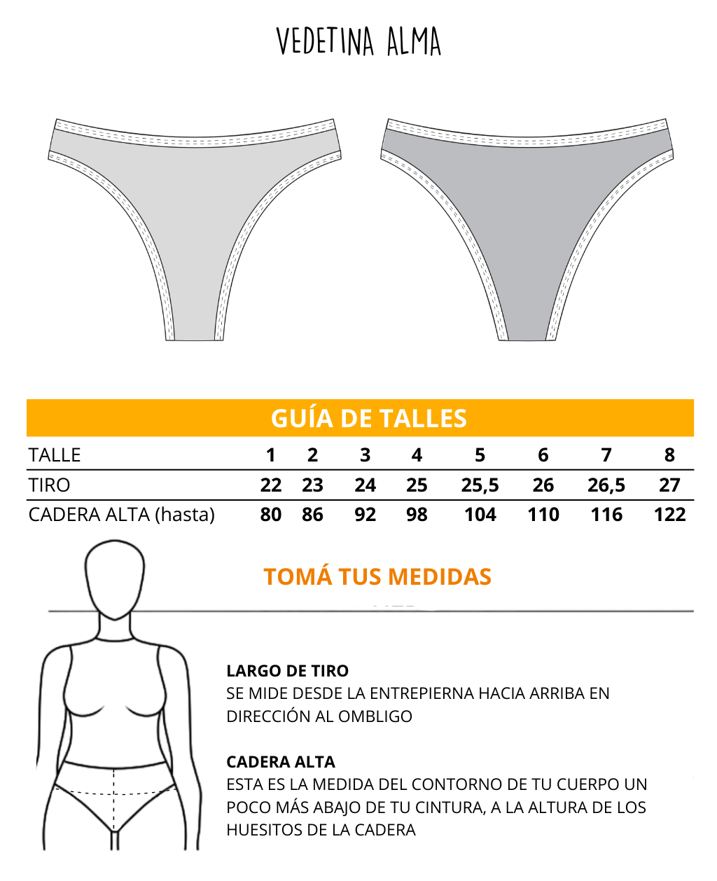 La vedetina Alma tiene el mismo calce cómodo y adaptable de nuestra Galilea, pero se distingue por su borde en color crema que genera un contraste hermoso y resalta aún más la textura del traje de baño. Es tiro medio, totalmente forrada y se amolda a tu cuerpo con suavidad gracias a su elástico embutido en cintura y piernas