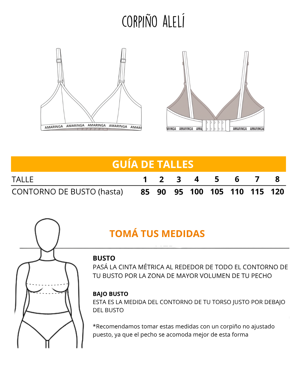- Elástico ancho en bajo busto con ganchito regulable de tres posiciones