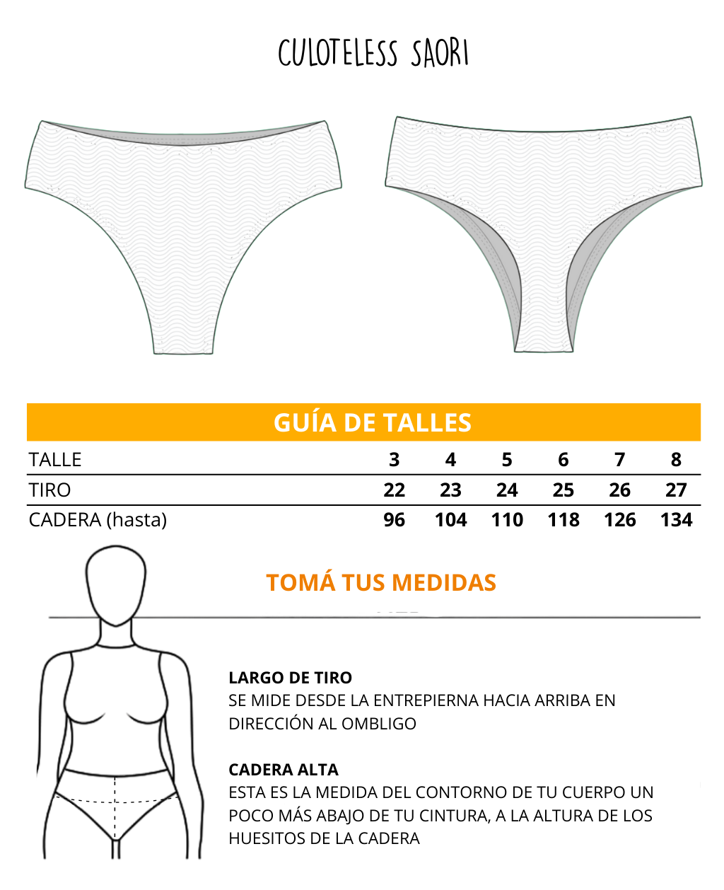 Nombre | Cintura | Cadera alta | Cadera baja | Talle |