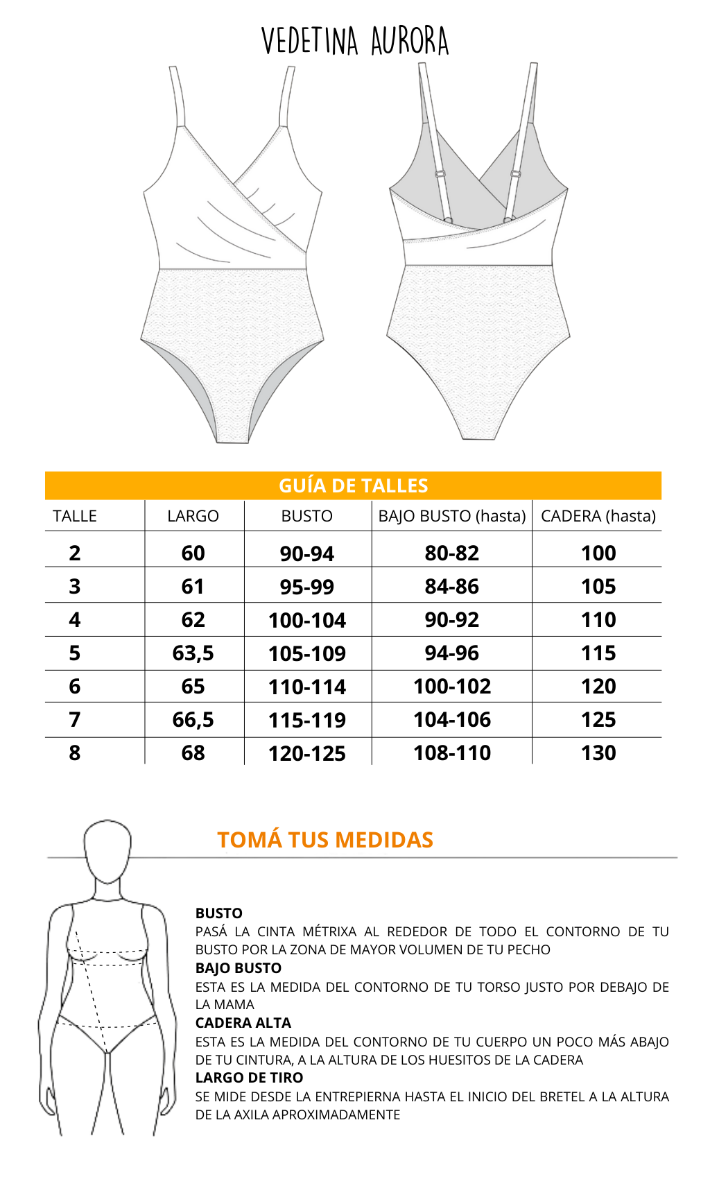 *Las medidas de la guía son aproximadas y pueden variar según el producto. Algunos modelos pueden calzar más ajustados que otros, aunque sean del mismo molde.. La tela del abdomen elastiza mucho más