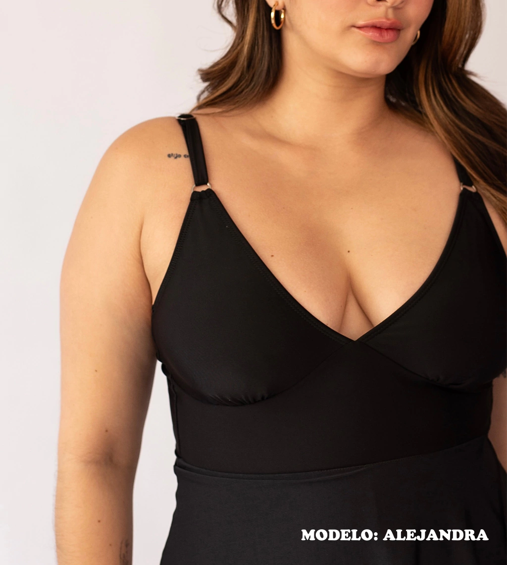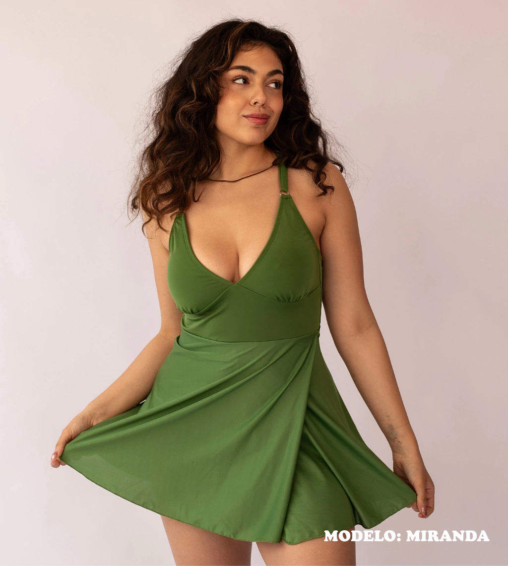 Nuestra malla enteriza con pollera Maeva está inspirada en la entera Renata, que fue un best seller el año pasado. Con una pollera súper suave que sale desde la cintura y podés usarla para cubrir la cola o atarla con un nudito para mayor comodidad. Es ideal si buscas una prenda versátil para el verano, que se adapta a cualquier situación. Queda como un vestidito cerrado y tiene mucha capacidad de copa