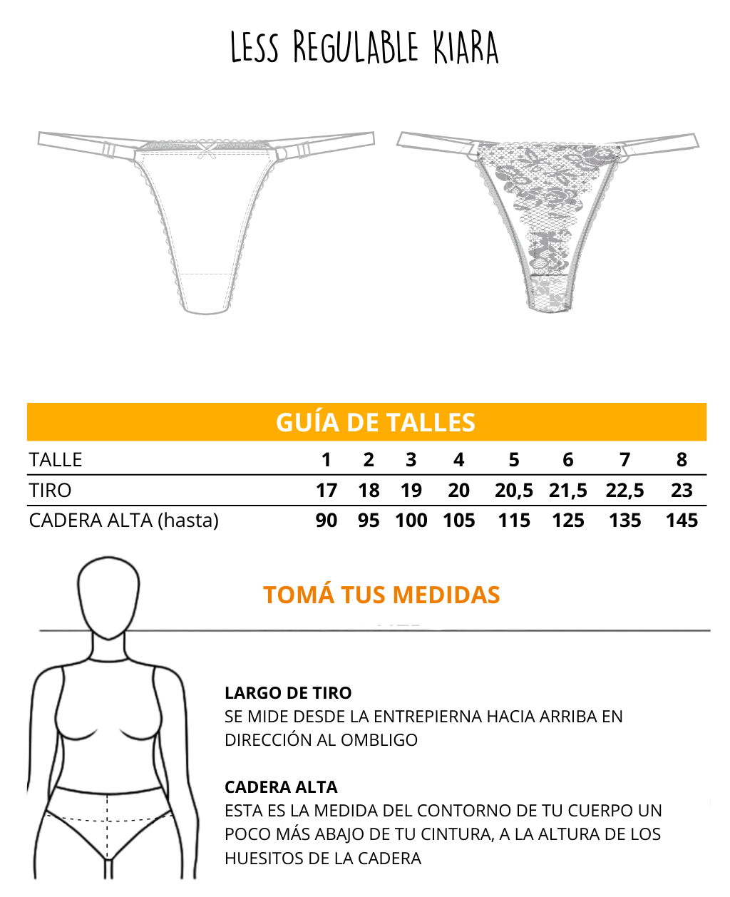 | Nombre | Busto | Bajo busto | Cintura | Cadera alta | Talle |