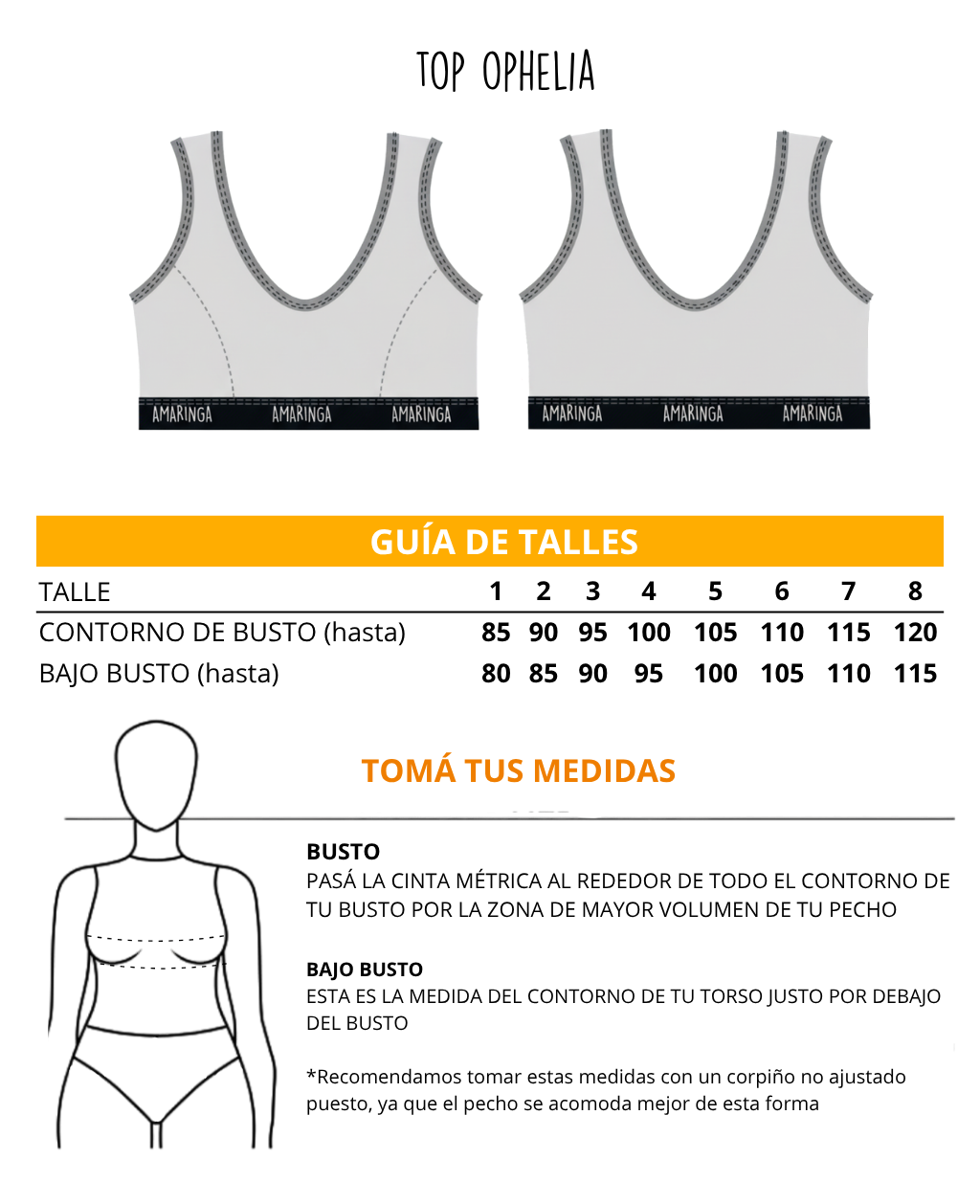 | Nombre | Busto | Bajo busto | Talle |