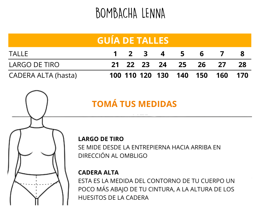 | Nombre | Busto | Bajo busto | Cintura | Cadera alta | Talle |